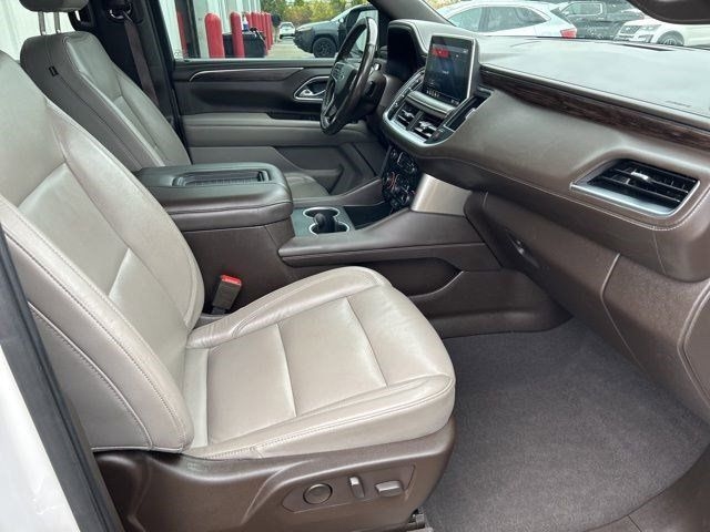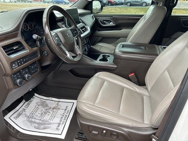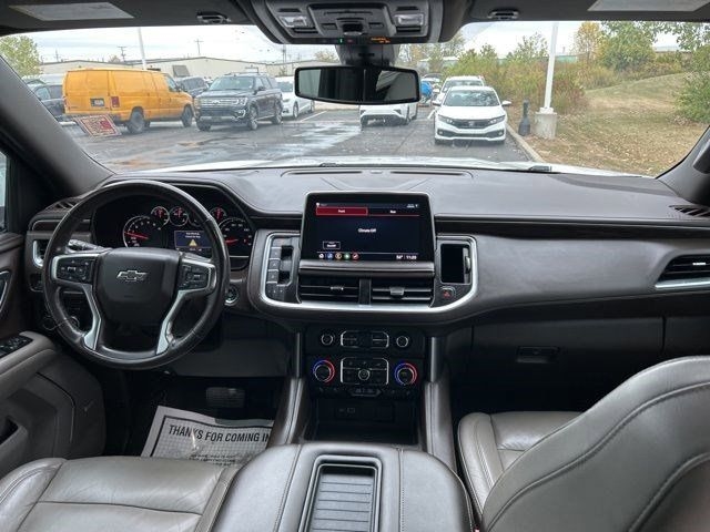 Step into the future with this sleek and stylish 2021 Chevrolet Tahoe. This white beauty is packed with all the latest tech, including a touchscreen infotainment system and a premium sound system that will turn every drive into a concert on wheels. The spacious interior is perfect for road trips with the family or nights out with friends, thanks to its comfortable seating and ample storage space.
